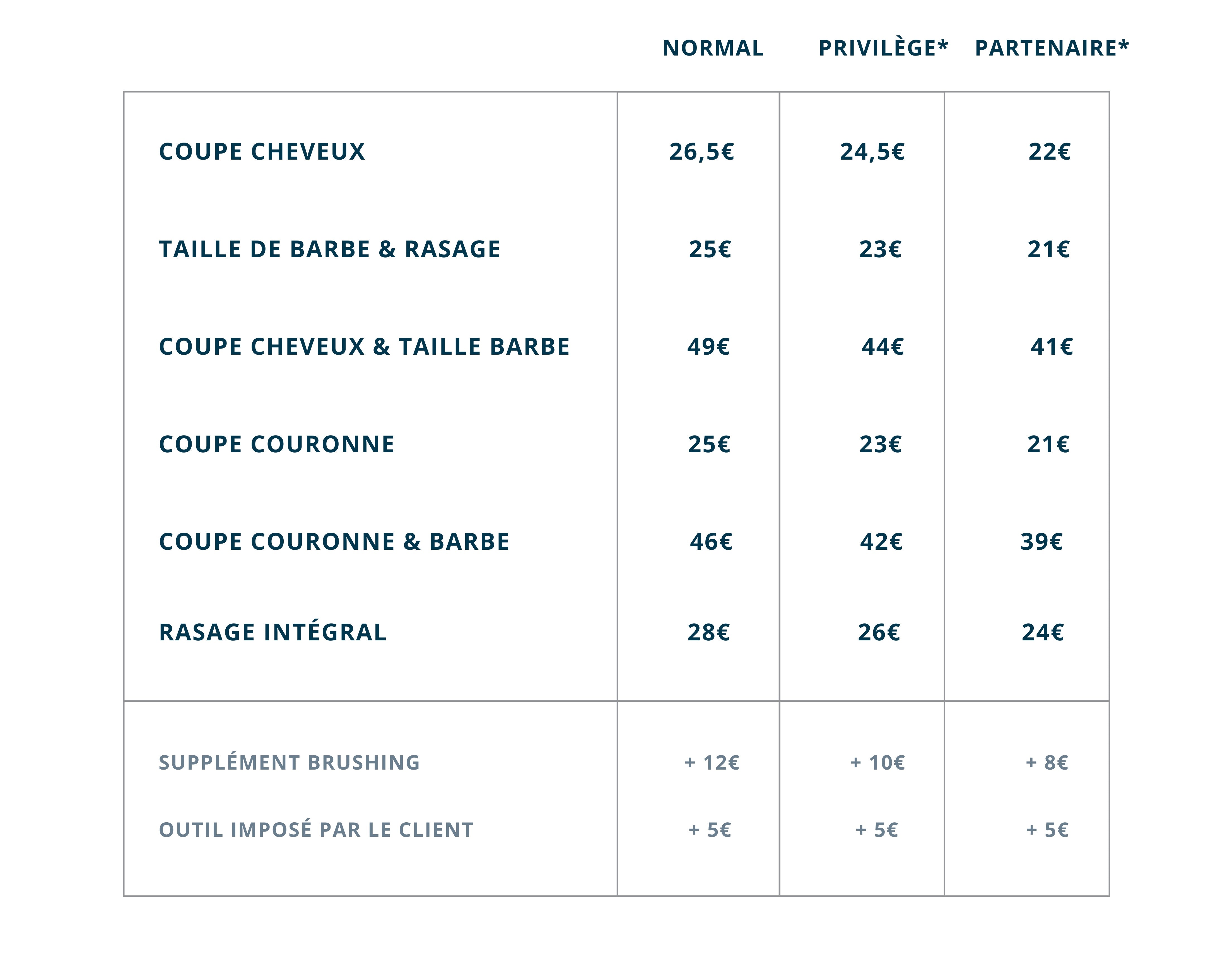 Tarifs Coupe Homme et Taille de Barbe